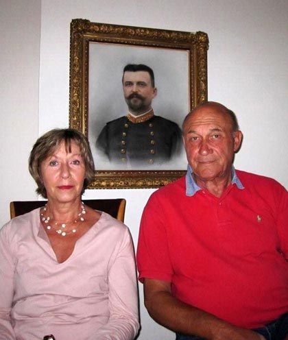 Vợ chồng ông Pierre và Claude Sadoul trong bức ảnh gửi về cho gia đình họ Đoàn. Ông Đoàn Thịnh giải thích, sở dĩ có bức ảnh "sắp đặt" này là do ông Sadoul thực hiện theo đúng yêu cầu của ông Đoàn Thịnh: hai vợ chồng ngồi hai bên, ngay dưới bức ảnh của ông nội Louis Sadoul.