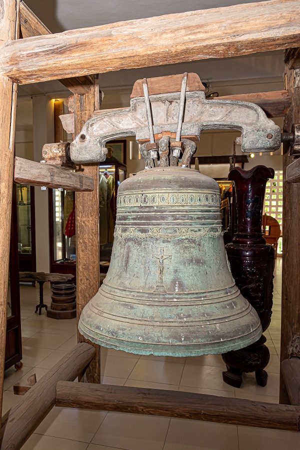 Chuông nhà thờ Phát Diệm ở tầng 3 của phương đình (Ảnh từ Báo Thanh Niên) Quan sát các thiết kế đặc biệt của 1 cái chuông chùa, mà chuông bên nhà thờ không hề có, như chỗ treo, 4 nụm gõ, những chữ Hán khắc lên một giai thoại hay ý nghĩa nào đó… giống như tất cả các chuông chùa. Chuông nhà thờ Phát Diệm không giống bất cứ cái chuông nhà thờ TCG nào trên thế giới như dưới đây. Mỗi chuông đều có quả chuông ở bên trong.