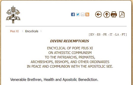 _______________ Bài liên quan: - Vạ Tuyệt Thông của Giáo Hội dành cho người theo Cộng Sản (TS Trần An Bài) - Lời Nguyền của Giáo Hoàng Pio 12 (BBT SH) _________________ PHỤ BẢN: Sắc lệnh Divini Redemptoris của Giáo Hoàng Pius XI. (vaticana.va) lược dịch: Chúa cứu thế Thư Giáo Hoàng Pius XI Về Cộng Sản Vô Thần Anh Chị Em đáng kính, sức khỏe và phép lành. 1.Lời hứa về Đấng Cứu Chuộc làm sáng ngời trang sử đầu tiên của nhân loại, và niềm hy vọng vững chắc được khơi dậy từ lời hứa này đã làm dịu đi sự tiếc nuối khôn nguôi về một thiên đường đã bị đánh mất. Chính niềm hy vọng này đã đồng hành cùng loài người trong cuộc hành trình mệt mỏi của mình, cho đến khi vào thời kỳ sung mãn, Đấng Cứu Rỗi được mong đợi đã đến để bắt đầu một nền văn minh phổ quát mới, nền văn minh Cơ đốc giáo, vượt trội hơn nhiều so với nền văn minh mà cho đến nay đã được một số quốc gia được nhiều đặc quyền hơn. 2. Tuy nhiên, cuộc đấu tranh giữa thiện và ác vẫn còn tồn tại trên thế giới như một di sản đáng buồn của sự sụp đổ nguyên thủy. Kẻ cám dỗ ngày xưa cũng chưa bao giờ ngừng lừa dối nhân loại bằng những lời hứa hão huyền. Chính vì lý do này mà sự rung chuyển này nối tiếp cơn chính biến khác đã đánh dấu sự trôi qua của nhiều thế kỷ, cho đến cuộc cách mạng của thời đại chúng ta. Có thể nói, cuộc cách mạng hiện đại này đã thực sự bùng phát hoặc đe dọa ở khắp mọi nơi, và nó vượt quá biên độ và bạo lực chưa từng có trong các cuộc đàn áp trước đây nhằm vào Giáo hội. Toàn thể các dân tộc nhận thấy mình có nguy cơ rơi trở lại một chủ nghĩa man rợ còn tồi tệ hơn chủ nghĩa đã áp bức phần lớn thế giới khi Chúa Cứu Thế đến. 3. Tất cả những điều nguy hiểm sắp xảy ra này, như các anh chị em đã phỏng đoán, là Chủ nghĩa cộng sản cực cấp tiến, và chủ nghĩa vô thần, nhằm mục đích đảo lộn trật tự xã hội và phá hoại chính nền tảng của nền văn minh Cơ đốc giáo. 4. Trước mối đe dọa đó, Giáo hội Công giáo không thể im lặng. Trên hết, Tòa án Tông đồ này đã không kiềm chế để lên tiếng vì nó biết rằng sứ mệnh xã hội và đúng đắn của mình là bảo vệ sự thật, công lý và tất cả những giá trị vĩnh cửu mà chủ nghĩa Cộng sản phớt lờ hoặc tấn công. Kể từ những ngày mà các nhóm "trí thức" được thành lập trong một nỗ lực ngạo mạn nhằm giải phóng nền văn minh khỏi những ràng buộc của đạo đức và tôn giáo. Những người tiền nhiệm của chúng ta đã thu hút sự chú ý của thế giới một cách công khai và rõ ràng về hậu quả của sự phi Cơ đốc hóa xã hội loài người. Liên quan đến Chủ nghĩa Cộng sản, Vị tiền nhiệm đáng kính của chúng ta, Đức Piô IX, về trí nhớ thánh thiện, ngay từ năm 1846, đã tuyên bố một lời lên án nghiêm trọng, mà ông xác nhận trong những lời của Giáo trình chống lại "học thuyết khét tiếng của cái gọi là Chủ nghĩa Cộng sản, hoàn toàn trái ngược với bản thân quy luật tự nhiên, và nếu một khi được thông qua sẽ hoàn toàn hủy hoại các quyền, tài sản và của cải của tất cả mọi người, và thậm chí cả xã hội. " , đã định nghĩa Chủ nghĩa Cộng sản là “căn bệnh dịch chết người tự len lỏi vào tận xương tủy của xã hội loài người chỉ để dẫn đến sự tàn lụi của nó.” [2] Với trực giác rõ ràng, ông chỉ ra rằng các phong trào vô thần tồn tại trong quần chúng của Thời đại Máy móc đều có nguồn gốc của chúng. trong trường phái triết học mà trong nhiều thế kỷ đã tìm cách tách rời khoa học khỏi đời sống của Đức tin và của Giáo hội. 5. Trong triều đại Giáo hoàng của Chúng tôi cũng đã thường xuyên và với sự kiên quyết khẩn cấp tố cáo xu hướng hiện nay đối với thuyết vô thần đang gia tăng một cách đáng báo động. Vào năm 1924 khi phái bộ cứu trợ của chúng tôi trở về từ Liên Xô, Chúng tôi đã lên án chủ nghĩa Cộng sản trong một Diễn văn đặc biệt mà Chúng tôi đã gửi tới toàn thế giới. Trong những Thông điệp "Đấng Cứu chuộc Nhân từ của Chúng Ta, Năm Bốn Mươi, Trong Tình Yêu của Chúa Kitô, Đắng Cay Tâm Hồn, Thân Thương Nhất Chúng Con," Chúng tôi đã nêu ra một cuộc chống đối long trọng chống lại các cuộc đàn áp xảy ra ở Nga, ở Mexico và bây giờ ở Tây Ban Nha. Hai Thông điệp của chúng tôi trong năm ngoái, lần đầu tiên nhân dịp khai mạc Triển lãm Báo chí Công giáo Quốc tế, và lần thứ hai trong buổi tiếp kiến của Chúng tôi với những người tị nạn Tây Ban Nha, cùng với Thông điệp của Chúng tôi về Giáng sinh năm ngoái, đã gợi lên một tiếng vang trên toàn thế giới. Trên thực tế, những kẻ thù dai dẳng nhất của Giáo hội, những kẻ đến từ Mátxcơva đang chỉ đạo cuộc đấu tranh chống lại nền văn minh Cơ đốc giáo, chính họ đã làm chứng bằng những cuộc tấn công không ngừng bằng lời nói và hành động, rằng cho đ