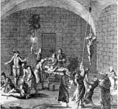 Tranh vẽ Thánh chiến và Mộc bản mô tả một Phòng tra tấn Dị giáo