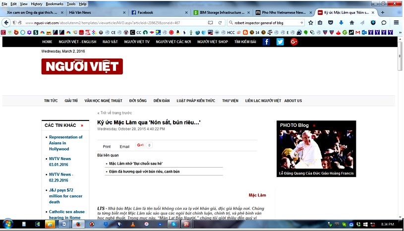 Ngày 3-3-2016 Thưa Bà Burns, Gần đây, tôi đã phổ biến một thông báo với công chúng để kêu gọi mọi người cung cấp thông tin về các nhân viên và phóng viên RFA như sau: Ông Nguyễn Văn Khanh, Bà Thanh Trúc (Gwen Ha), Ông Mặc Lâm (Phạm Thân) và Ông Lê Khiêm. Kết quả là tôi đã nhận được những thông tin có giá trị và nhiều lời mách bảo, mà tôi sắp sửa chia sẻ với Bà như là những chứng cớ cung cấp thêm cho cuộc điều tra mà Bà đang thực hiện. Tôi tin rằng, đây là những chứng cớ trực tiếp và có thể kiểm chứng. Chắc bà cũng biết rằng, điều quan trọng là ngăn chặn những người kể trên để họ không phi tang chứng cớ có thể kết tội như email, hoặc giấu giếm hoặc có âm mưu giấu giếm chứng cớ. Làm như thế là cản trở công lý, là phạm tội hình sự, nếu như cuộc điều tra của Bà đòi hỏi tiếp theo phải có cuộc điều tra hình sự của chính quyền liên bang. Thật không thể hình dung được rằng tất cả những điều nói trên đã xảy ra mà Bà Libby Liu không hề hay biết, trừ khi Bà Liu bất lực hay đồng loã. Làm thế nào để xảy ra chuyện nhiều nhân viên RFA, đặc biệt là vị Giám đốc Chương trình Việt ngữ, có hợp đồng làm việc bên ngoài, xuất hiện trước công chúng để ủng hộ một đảng chính trị, hoặc vi phạm điều lệ đạo đức của chính RFA một cách hoàn toàn vô tội vạ trong thời gian dài như vậy? Làm thế nào để xảy ra chuyện RFA hợp tác với Việt Tân, một đảng chính trị ngoại quốc, trong một số dự án bề nổi, trong khi chính sách của RFA khẳng định rõ ràng rằng “các nhà báo của RFA phải giữ sự độc lập đối với mọi đảng chính trị, các nhóm đối lập, tổ chức lưu vong, hoặc tôn giáo, ở những quốc gia mà tin tức và thông tin của RFA được phổ biến, và không được cổ suý cho bất kỳ quan điểm chính trị nào có thể hoặc bị xem là ảnh hưởng đến tính khách quan và vô tư của RFA”? Làm thế nào để xảy ra tình trạng các bản tố cáo của nhân viên RFA đã bị bỏ qua một cách có hệ thống, không hề bị điều tra, trong khi người tố giác thì bị bịt miệng bằng khoản trợ cấp thôi việc? Xét về tầm vóc, mức độ trầm trọng và mức độ thường xuyên của những vi phạm, thật đáng ngạc nhiên vì mức độ của sự điều hành sai trái, và không thể loại trừ có sự thông đồng giữa Bà Libby Liu và Ông Nguyễn Văn Khanh. Các công việc bên ngoài của Ông Nguyễn Văn Khanh Trong những lần liên lạc trước đây, tôi kêu gọi sự quan tâm của Bà đối với sự việc là Ông Nguyễn Văn Khanh, ngoài RFA ra, còn làm việc hợp đồng có thù lao như là thông tín viên/bình luận viên/biên tập viên cho 5 tổ chức truyền thông Việt ngữ. Những mách bảo mà tôi mới nhận được trong mấy ngày qua tiết lộ rằng Ông ta còn làm hợp đồng với thêm 2 cơ quan truyền thông nữa, nâng con số tổng cộng lên thành 7 cơ quan truyền thông. Đó là: 1. SBTN: Ông Khanh đã được tuyển dụng như một người huấn luyện, quảng cáo và làm MC cho SBTN. Tháng 6 năm 2013 Ông ta được SBTN cử đi Úc để thiết lập đài SBTN – Úc Châu. Ông ta đi với Bà Minh Thuý, là nhân viên của SBTN-DC và cũng là đảng viên Việt Tân và là bạn gái của Ông ta. 2. SBTN-DC: Ông Khanh làm việc như là một phóng viên cho đài SBTN-DC trong chương trình “Bản Tin Hoa Thịnh Đốn.” Nhiều khi Ông ta xuất hiện trong chương trình này vào giờ giấc mà lẽ ra ông ta phải làm việc cho RFA. 3. VATV: Ông ta đã tham gia các buổi huấn luyện do VATV tổ chức tại nhiều thành phố khác nhau ở Hoa Kỳ và ở các quốc gia khác để huấn luyện cho những ai muốn làm phóng viên cho SBTN. 4. Radio Bolsa: Ông ta là thông tín viên đặc biệt của đài phát thanh đặt tại quận Cam, California. Ông ta có ít nhất 3 chương trình mỗi tuần vào lúc 10 giờ sáng, lại cũng là giờ lẽ ra Ông ta phải làm việc cho RFA. 5. Việt Nam Hải Ngoại Radio: Cho tới gần đây Ông ta chuyên trách một chương trình phát thanh hàng tuần với giá biểu là $100 mỗi lần và với điều kiện là tuần nào ông ta vắng mặt thì vẫn phải được trả thù lao. 6. Báo Người Việt: Ông ta là người hợp tác thường xuyên với tờ nhật báo này ở quận Cam, California. 7. Báo Phố Nhỏ: Với những bút hiệu khác nhau, Ông Khanh quán xuyến toàn bộ trang nhất của tờ báo phát hành hai tuần một lần này và nhận thù lao $2.500 mỗi tháng. Các bút hiệu Ông ta dùng gồm có: Nguyễn Đức Tuấn Anh (tên của người con trai duy nhất), Lê Thắng Độ, Vũ Quang Lâm, Trương Khả Trân, Nguyễn Long Quân... Ông Khanh quán xuyến toàn bộ trang nhất của tờ báo phát hành hai tuần một lần này và nhận thù lao $2.500 mỗi tháng. Ảnh do tác giả cung cấp Theo ước tính của tôi, Ông ta có thu nhập khoảng $80,000 - 100,000 mỗi năm từ những công việc ngoài RFA kể trên, và danh sách các tổ chức truyền thông hợp đồng với ông ta có thể không ngưng ở con số 7 nói trên. Với 7 công việc ngoài RFA, trong đó có những công việc đòi hỏi nhiều thời gian và/hoặc phải phục v
