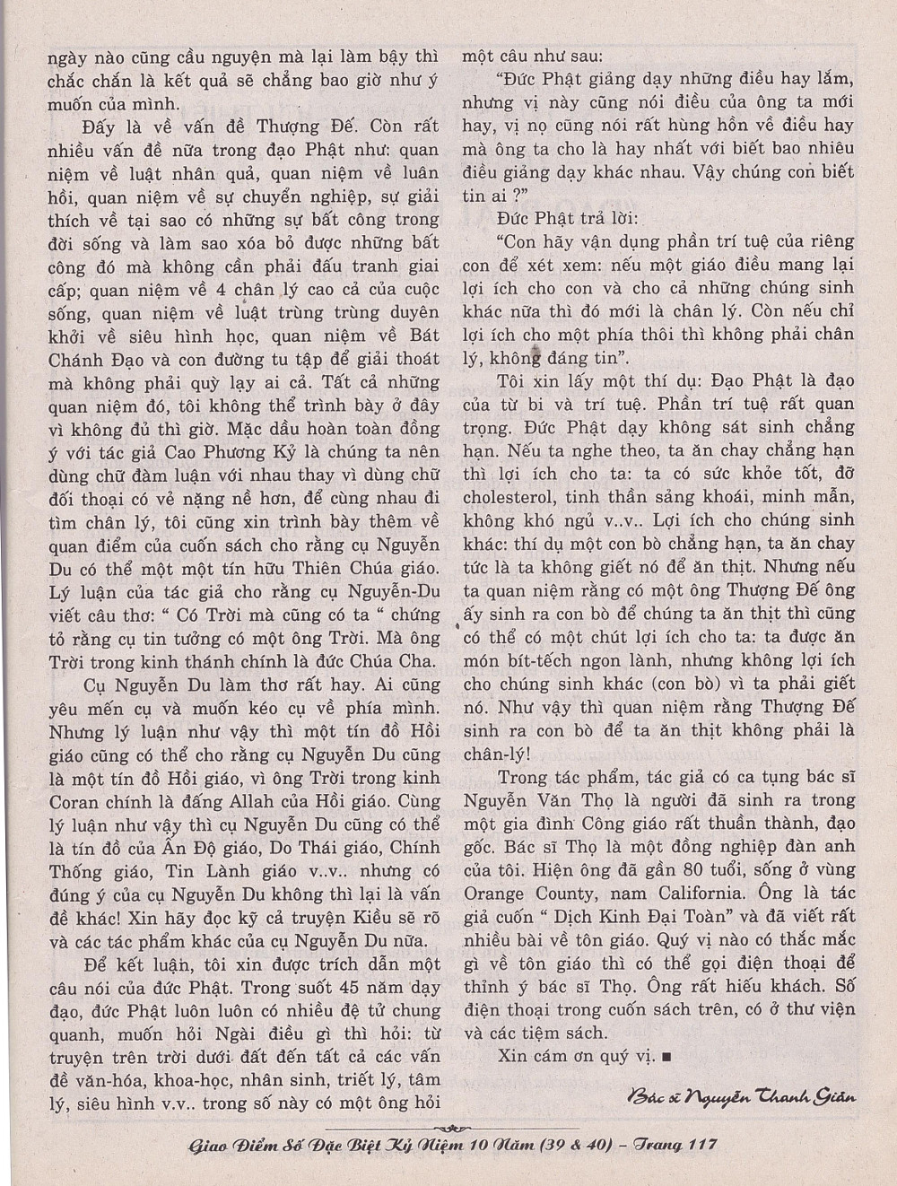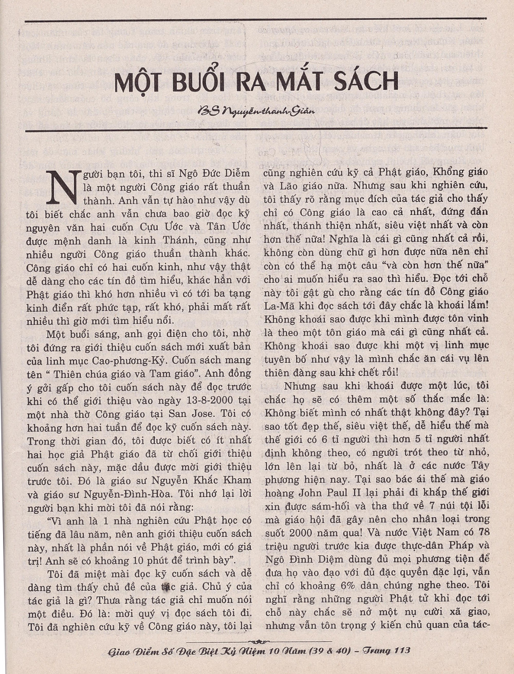 Giao Điểm 39-40: Một Buổi Ra Mắt Sách BS Nguyễn Thanh Giản https://sachhiem.net/TONGIAO/GD39_40/Rms/BSNgThanhGian.php LTS: Bài này nằm trên trang 113 của báo giấy Giao Điểm phát hành mùa đông năm 2000. Xin bấm vào hình bên trái để đọc bên phải.