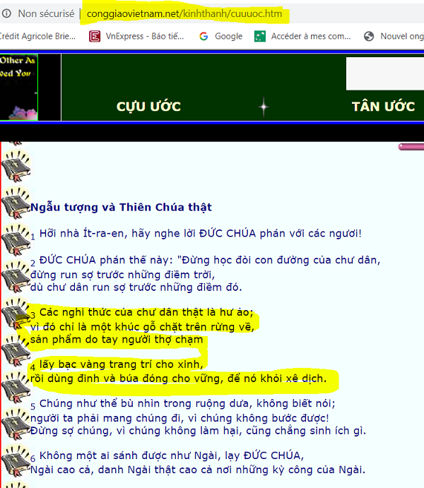 Mục sư Ogwin đưa kinh thánh Giê-rê-mi chứng minh tập tục thờ thần mặt trời đã có trước khi Giêsu ra đời thật lâu, vì Cựu Ước có tuổi đời lớn hơn Tân Ước xấp xỉ 1500 năm. Điều này chứng tỏ tục lệ chặt cây (thông) về trang trí bạc vàng lên đó để tế thần mặt trời vào ngày Đông Chí 25 tháng 12 là chính xác, và ta cũng có thể dựa vào kinh thánh để kết luận rằng, tập tục trang trí cây Nô En ngày nay có nguồn từ ngoại đạo, người Kytô giáo chân chính không nên làm. Ogwin đóng thêm cây đinh vào luận cứ của mình : Jésus déclara : « C’est en vain qu’ils m’honorent, en donnant des préceptes qui sont des commandements d’hommes » (Marc 7 :7). Ceux qui désirent célébrer Noël pour adorer le Christ se retrouvent face à un dilemme : doivent-ils suivre l’exemple d’adoration prescrit dans les Écritures, ou doivent-ils rester accrochés à ces chères coutumes, sans se soucier de leur origine et de leur nature ? Jésus réprimanda de nombreux chefs religieux de Son époque, parce qu’ils rejetaient les commandements de Dieu au profit de leurs propres traditions (verset 9). Dịch: Chúa Giêsu tuyên bố: "Thật vô ích khi họ tôn trọng ta, bằng cách đưa ra giới luật do loài người đặt để" (Mác 7: 7). Những người muốn tổ chức lễ Giáng sinh để thờ phụng Chúa Kitô phải đối mặt với một sự bế tắc: họ nên theo cách thờ phượng được quy định trong thánh thư, hay họ nên khư khưbám chặt vào những phong tục đắt đỏnày, bất kể nguồn gốc của chúngcũng như bản chất của chúng ? Chúa Giê-su lên án nhiều nhà lãnh đạo tôn giáo trong thời của Ngài đã từ chối các điều răn của Thiên Chúa để gìn giữ truyền thống của riêng họ (câu 9). Hết dịch. Và mục sư John Ogwyn kết luận bằng một lời kêu gọi hãy trả ngày Nô En lại cho người thế tục, vì thực sự nó chả liên hệ gì đến đạo Chúa: En conséquence, au lieu de chercher à associer le Christ à Noël, nous devrions admettre qu’Il n’y a jamais été associé ! Noël n’a jamais été une fête chrétienne ! Les véritables chrétiens doivent le restituer aux païens, après tout, Noël leur appartient ! Au lieu de les emprunter au monde qui nous entoure, nous devrions tirer nos coutumes et nos pratiques religieuses de la Bible. Ce faisant, nous adorerons notre Créateur en esprit et en vérité, comme Il nous recommande de le faire (Jean 4 :24). Dịch: Do đó, thay vì tìm cách liên kết Chúa Kitô vào lễ Giáng sinh, chúng ta nên phải thừa nhận rằng Ngài chưa hề có liên hệ với nó ! Giáng sinh chưa bao giờ là một ngày lễ Kitô giáo ! Kitô hữu đích thực phải trả lại cho dân ngoại, vì sau hết, Nô En là của họ! Thay vì vay mượn những tập quán từ thế giới xung quanh chúng ta, chúng ta nên rút ra các phong tục và nghi thức tôn giáo từ Kinh thánh. Làm như vậy là chúng ta sẽ tôn thờ Đấng Tạo Hóa của chúng ta trong tinh thần và trong sự thật, như Ngài khuyên chúng ta nên làm (Giăng 4:24). Hết dịch. Bài viết của mục sư John Ogwyn chấm dứt ở lời kêu gọi từ bỏ Nô En khá hùng hồn. Đa phần bạn đọc sẽ cho rằng đây là quan điểm vừa mang tính cá nhân của mục sư Ogwin, vừa đưa ra cái nhìn ít nhiều mang sắc thái Tin Lành có khuynh hướng đả kích Công giáo. Xin thưa là không hẵn như vậy. Theo tôi, cả hai bên, Tin Lành và Công giáo, nếu ai có cái nhìn đầy đủ kiến thức về lịch sử và có suy tư độc lập, sẽ ít nhiều thấy rằng, ngày 25 tháng 12 hoàn toàn chả liên hệ gì đến Kytô giáo. Người Công giáo Pháp từng cũng đã khó chịu khi ông già Nô En lấn sâu vào đất nước họ. Như tôi đã nêu ra sự kiện đốt hình nộm ông già Nô En vào năm 1951 trước đại giáo đường tỉnh Dijon Pháp ở phần trên, thì Pháp là quốc gia toàn tòng Công giáo Rôma vào thời điềm đầu thập niên 50, nghĩa là lúc Pháp còn đang đô hộ Việt Nam. Dưới đây là quan điểm của Giáo Hội Công giáo Dijon đưa ra, nhân sự kiện đốt hình ông già Nô En vào năm ấy, được đăng trên báo Figaro, mà theo tôi, chính giáo hội đứng sau giựt dây cho giáo dân làm: Il ne s'agissait pas d'une attraction, mais d'un geste symbolique. Le Père Noël a été sacrifié en holocauste. À la vérité, le mensonge ne peut éveiller le sentiment religieux chez l'enfant et n'est en aucune façon une méthode d'éducation», écrivait l'église de Dijon. «Pour nous, chrétiens, la fête de Noël doit rester la fête anniversaire de la naissance du Sauveur» Dịch: Đó không phải là một dự thu hút người đến xem, mà là một cử chỉ tượng trưng. Ông già Nô En đã được đốt như vật tế thần. Trong thực tế, nói dối không thể đánh thức tình cảm tôn giáo nơi trẻ em, cũng không phải là một phương pháp giáo dục. Đối với các Kitô hữu chúng ta, ngày lễ Nô En vẫn phải là ngày lễ kỷ niệm sự sinh ra của Đấng Cứu Thế" hết dịch. Giáo hội Dijon cho rằng nói dối về Ông già Nô En là phi giáo dục. Tôi xin thêm vào lời ấy đôi chút duyên vui: nhưng vẫn nên dối láo đôi chút về ngày sinh của Đấng Cứu Thế. Viết bài trong mùa Nô En, nên các trang quảng cáo không ngừng hiện lên để câu views và mời gọi mua sắm. Tôi xin tặng độc giả gần xa một trang quảng cáo mùa Nô En
