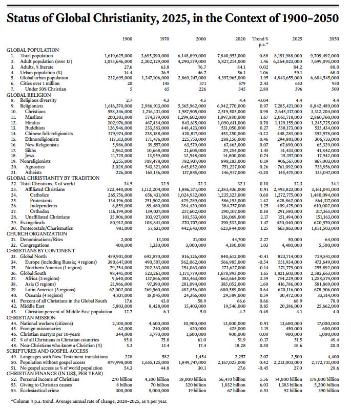 Còn các nước đang phát triển ở Châu Á, Mỹ Latinh? Tăng trưởng Kitô giáo ở đây chỉ là di sản thực dân (truyền giáo từ châu Âu đóng vai trò lớn). Còn ở Châu Phi, nó chủ yếu nhờ cải đạo nội địa, Giáo Hội công giáo La Mã, các giáo phái Tin Lành bùng nổ với lời hứa chữa lành bệnh tật, thịnh vượng, gắn kết, phát triển cộng đồng – những điều hấp dẫn ở nơi nghèo đói, bệnh tật và bất ổn vẫn còn phổ biến . Và với tỷ lệ sinh cao ở châu Phi (trung bình 4-5 con/phụ nữ so với dưới 2 ở châu Âu) cũng góp phần khiến Kitô hữu sinh nhiều con hơn, và con cái thường theo tôn giáo cha mẹ.