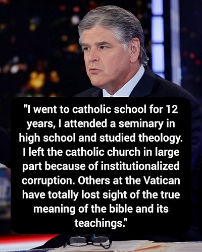 _____ COMMENTS _____ Nguyen Binh by Author 🚨Hannity: "Tôi đã học trường công giáo 12 năm, tôi đã theo học một trường trung học và nghiên cứu thần học. Tôi đã rời khỏi nhà thờ Công giáo một phần lớn vì tham nhũng có tổ chức hóa. Những người khác tại Vatican đã hoàn toàn mất tầm nhìn về ý nghĩa thực sự của kinh thánh và những lời dạy của nó. " Suy nghĩ?