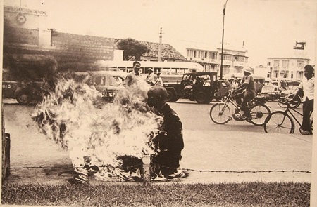Tấm hình lịch sử Đại Đức THÍCH THIỆN MỸ tự thiêu trước Nhà Thờ Đức Bà Saigon ngày 27.10.1963