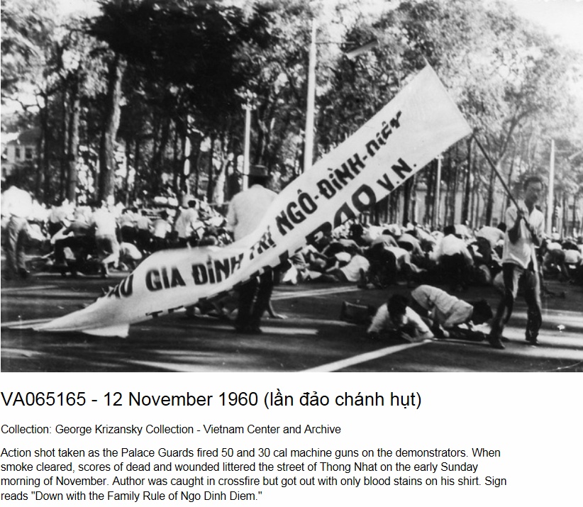 Biểu ngữ “Đả đảo Gia đình trị Ngô Đình Diệm”của đoàn biểu tình trên đường Thống Nhất (Sài Gòn) trong cuộc binh biến của binh chủng Nhảy Dù ngày 11-11-1960