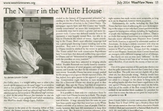 Tờ Westview News chiêu khách bằng danh hiệu "Tiếng nói của thành phố West Village" vừa đăng một trang bình luận có tiêu đề "Người Nig-r ở Bạch Ốc”.