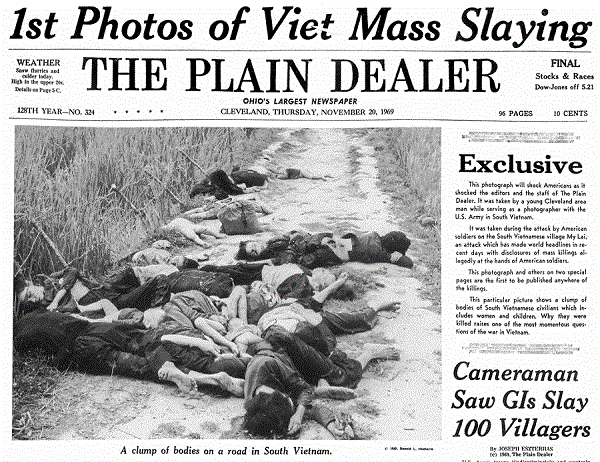 Tháng 11 năm 1969, tôi viết vài bài báo về Calley, Meadlo và vụ thảm sát. Tôi nhờ báo Life và báo Look đăng, nhưng không được. Vì vậy tôi phải gửi cho một hãng thông tấn nhỏ ở Hoa Thịnh Đốn, chuyên đăng tin phản chiến, tên là Dispatch News Service. Đây là thời điểm nước Mỹ đang sôi sục vì có nhiều chuyện xáo trộn xảy ra. Richard Nixon thắng cử năm 1968, hứa sẽ tìm cách chấm dứt chiến tranh. Nhưng trong bụng ông ta muốn thắng cuộc chiến này bằng cách leo thang, và bí mật ném bom. Trong năm 1969, mỗi tháng số lính Mỹ tử trận ở Việt Nam lên đến 1,500 người, giống như con số tử vong trong năm trước.