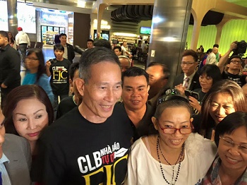 (Ảnh chụp cảnh Tạ Phong Tần được đón tiếp ở phi trường, có mặt nghị sĩ Janet Nguyễn)
