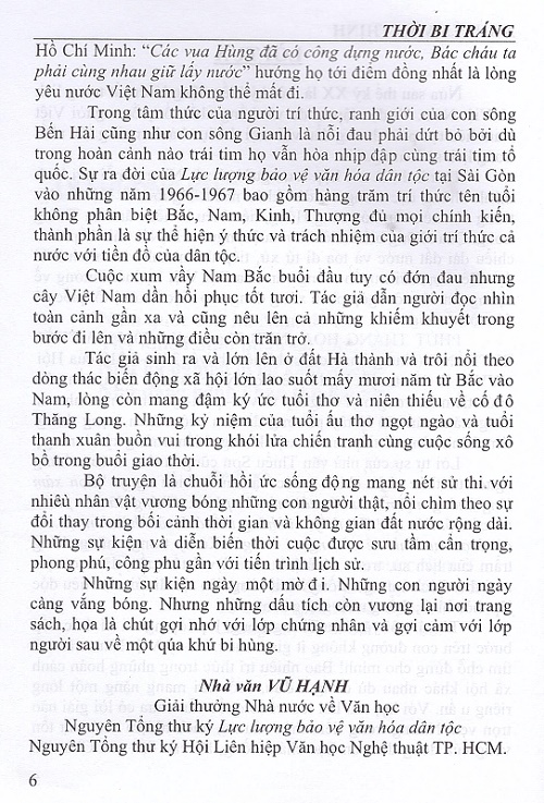 LTS: Không phải ai sinh ra trong thời chiến đều có được hân hạnh từng trải cuộc đời mình ở nhiều khía cạnh của chiến tranh. Chỉ có thể đọc nhiều tác phẩm, chúng ta mới có thể nhìn được và hiểu được phần nào những con người thực sự trong giai đoạn khốc liệt của nước nhà. Đối với những người sinh ra ở những nơi không có tiếng bom hay không có mưa da cam trên đầu hay trên đồng ruộng, vì khó nghĩ trên đời đã có những chuyện như thế, xem các nhân vật trong chuyện là những người "huyền thoại" trong cổ tích. Những con người như thế thực sự đã từng sống, từng hy sinh, từng miệt mài cho một một tương lai mà chính họ cũng cảm thấy xa như ở một chân trời: một tương lai trong đó nước nhà được độc lập, rồi một tương lai hai miền được thống nhất. Bạc bẽo thay, có một số bạn trẻ thời nay, lớn lên trong cảnh thanh bình, bon chen vật chất, khó có thể hình dung những chuyện đã xảy ra, và có khi không tin đã thực sự có những sự việc như được kể.