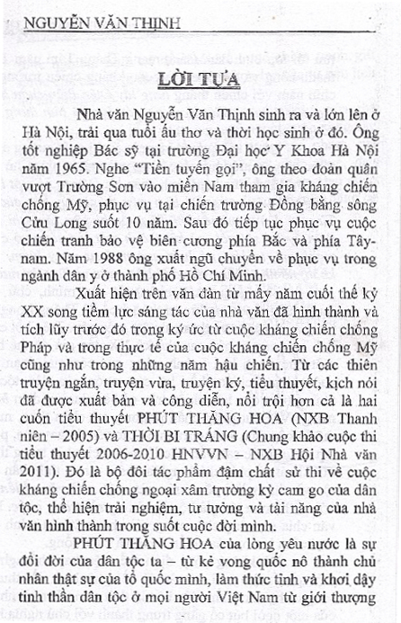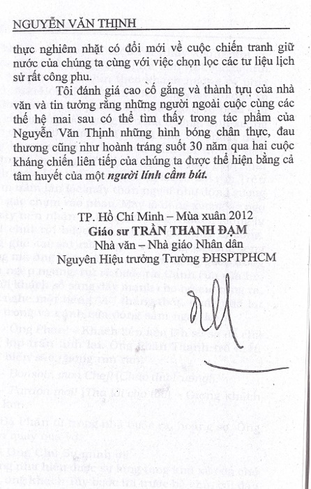 Nhân tòa soạn được đọc một số sách của nhà văn Bác Sĩ Nguyễn Văn Thịnh gói ghém những "huyền thoại" có thực ở trên, chúng tôi xin được hân hạnh giới thiệu với bạn đọc. Những tác phẩm này không phải được dựng nên bởi trí tưởng tượng, mơ mộng, hay tài sáng tác của một người ngồi trong tháp ngà. Trái lại, những câu, những dòng đều là kết tinh của những giờ phút sống động, những kinh nghiệm bản thân, những năm tháng quên mình để dấn thân, hòa quyện với những giá trị đầy ắp tính nhân văn dù tất bật trong khói lửa. Những chất liệu đó cùng với khả năng tổng hợp khéo léo của tác giả đã lôi cuốn người đọc giống như những quyển tiểu thuyết trinh thám.
