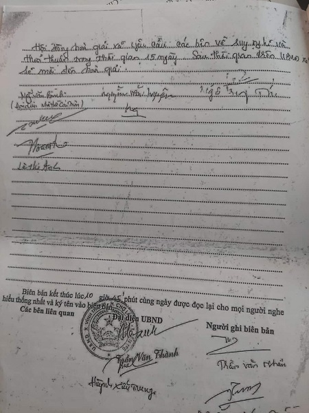 Không thương lượng được với nhà thờ tôi đã viết đơn xin tranh chấp đất gởi đến ủy ban nhân dân xã Vĩnh Thạnh.