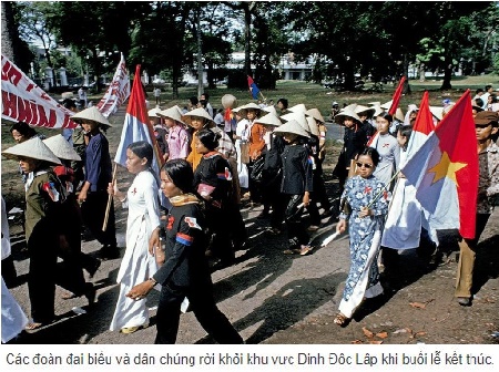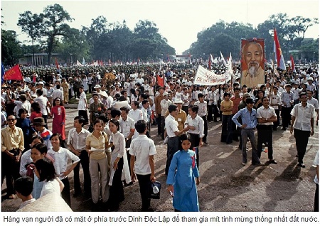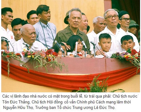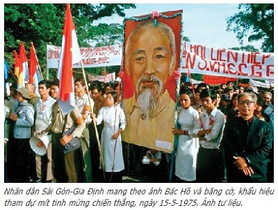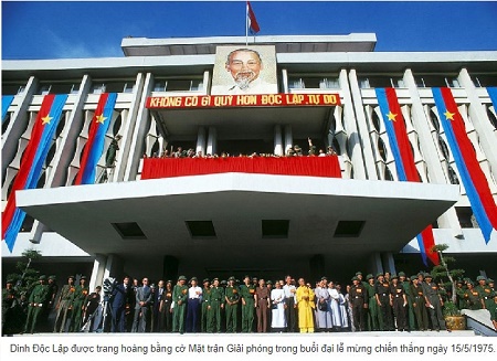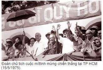 Lê Duẫn Nguồn: sách CÁCH MẠNG XÃ HỘI CHỦ NGHĨA Ở VIỆT NAM, tập II, từ trang 681 đến trang 695 _____________ Bài đọc thêm: 1- Nhớ cuộc mít tinh đầu tiên mừng đại thắng, Báo "Sự Kiện và Nhân Chứng", Thứ Năm, 14/05/2017: QĐND - Chỉ sau nửa tháng kể từ ngày miền Nam hoàn toàn giải phóng (30-4-1975), một cuộc mít tinh quy mô lớn được tổ chức hoành tráng, trang nghiêm tại Dinh Độc Lập (nay là Hội trường Thống Nhất, TP Hồ Chí Minh). 2- Lễ mừng chiến thắng 30/4/1975 đã được chuẩn bị và bảo vệ thế nào? Báo ANTG ngày 16/05/2009 Để chào mừng ngày toàn thắng của cuộc kháng chiến trường kỳ gian khổ nhưng vĩ đại nhất trong lịch sử chống ngoại xâm giải phóng dân tộc, Trung ương Đảng, Quốc hội và Chính phủ đã quyết định cả nước tổ chức trọng thể ngày hội mừng chiến thắng vào ngày 15/5/1975. Ở thành phố Sài Gòn, cuộc míttinh và diễu binh, diễu hành được tổ chức long trọng và đón Chủ tịch Tôn Đức Thắng cùng nhiều đồng chí lãnh đạo cấp cao của Đảng và Nhà nước vào dự Videos - Sài Gòn duyệt binh mừng thống nhất đất nước ngày 15 tháng 5, 1975: https://www.youtube.com/watch?v=v277rUgqiLs https://www.youtube.com/watch?v=YBpk_RFdNb4 3- Những bức ảnh xúc động của 'Ngày thống nhất đất nước' Baomoi.com ngày 28/04/18 19:27 Nhân kỷ niệm 43 năm Ngày Giải phóng miền Nam, thống nhất đất nước (30/4/1975 – 30/4/2018), Trung tâm Bảo tồn Di sản Thăng Long, Hà Nội đã tổ chức triển lãm ảnh “Ngày Thống nhất đất nước” tại Hoàng thành Thăng Long. 4- Sức mạnh của “thế trận lòng dân” trong Đại thắng mùa Xuân 1975, trang nguyentandung ngày 24/04/2015 5- Chùm ảnh: Đại Lễ mừng chiến thắng ở Sài Gòn ngày 15/5/1975. Bao thuongmaitruongxua.vn ngày 15/01/2016 Ngày 15/5/1975, đại lễ mừng giải phóng Sài Gòn, thống nhất đất nước đã được tổ chức long trọng tại Dinh Độc Lập với các hoạt động mít tinh và diễu binh, diễu hành. 6- Tin tức: Kỷ niệm đại thắng Mùa Xuân 1975 web vhttdlhd.vn ngày 26/04/2013: