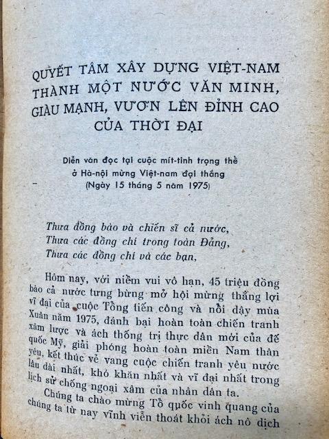 Bài Diễn Văn Mừng Chiến Thắng 30/4/1975- Bí Thư Thứ Nhất Lê Duẩn đọc ngày 15-5-1975 tại Hà Nội Tài liệu sưu tầm https://sachhiem.net/LICHSU/L/LeDuan_mungchienthang.php LTS: Ngày kỷ niệm Lễ Độc Lập 2 tháng 9, năm 2018 vừa qua, GS Nguyễn Mạnh Quang có nhờ trang nhà tìm tài liệu ghi dấu ngày quan trọng này. Rất may nhờ có GS Phan Văn Hoàng ở BBT báo Hồn Việt đã tìm được tài liệu sau đây. Đó là những trang trích từ sách CÁCH MẠNG XÃ HỘI CHỦ NGHĨA Ở VIỆT NAM, tập II, liên quan đến bài diễn văn mà Bí thư thứ nhất Lê Duẩn đọc ngày 15-5-1975 tại Hà Nội trong cuộc mít tinh mừng Chiến thắng. Xin cám ơn Giáo Sư, và xin ghi lại để mọi người có thể tham khảo. (SH)