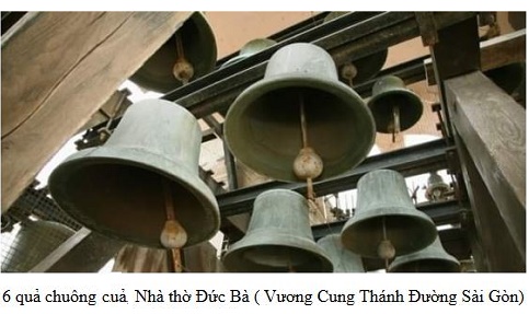 Chuông nhà thờ Phát Diệm ở tầng 3 của phương đình (Ảnh từ Báo Thanh Niên) Quan sát các thiết kế đặc biệt của 1 cái chuông chùa, mà chuông bên nhà thờ không hề có, như chỗ treo, 4 nụm gõ, những chữ Hán khắc lên một giai thoại hay ý nghĩa nào đó… giống như tất cả các chuông chùa. Chuông nhà thờ Phát Diệm không giống bất cứ cái chuông nhà thờ TCG nào trên thế giới như dưới đây. Mỗi chuông đều có quả chuông ở bên trong.