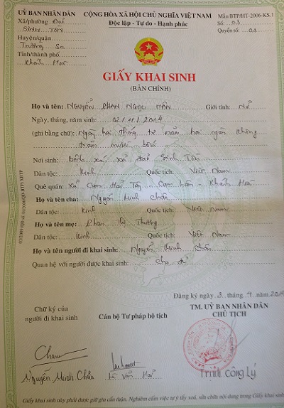 Cầm trên tay nâng niu và ngắm nghía tấm giấy khai sinh của cháu Hân đỏ chót màu quốc huy và tươi rói màu con dấu thị thực, tôi như được cảm nhận sâu hơn về sức sống và vẻ đẹp của những đóa hoa phong ba nở giữa lòng biển cả. Tôi tỉ tê hỏi anh Châu đôi điều về chuyện nghề, chuyện đời của vợ chồng anh. Anh kể chuyện nghề: “Ra sống ở đảo, mình làm nghề đánh cá, đi mủng. Mình đánh các loại cá thu, cá mó, cá bè, bạch tuộc, mực... ”. Tôi hỏi về việc đáp ứng các nhu cầu thiết yếu cho cuộc sống trên đảo như nước uống, rau xanh, những nhu cầu mà việc giải quyết gặp khó khăn bội lần so với nơi đất liền, anh vẫn trả lời vui vẻ như không có chuyện gì: “Nước ngọt thì xài nước mưa. Rau xanh tự trồng được”. Tôi không hỏi về các nhu cầu vật chất nữa, mà xoay sang hỏi về “lĩnh vực tinh thần”: “Xa người thân, xa quê hương, ra lập nghiệp ở đảo, vợ chồng anh cảm thấy thế nào?”. Câu hỏi đã ướm và ra khỏi lòng rồi, tôi còn e làm anh Châu chạnh niềm. Nhưng tôi bỗng vui và thấy yên lòng, khi anh Châu giải tỏ: “Vợ chồng tôi đã quen dần với cuộc sống ở đảo. Sống đâu quen đó mà!”. Đến thăm Trường Tiểu học Trường Sa, gặp các em học sinh tiểu học ở đây, tôi được sống với những cảm giác vừa quen thuộc, vừa mới mẻ. Quen thuộc là được sống lại với thế giới tuổi thơ êm đềm của đời người ai cũng có. Mới mẻ là được chứng kiến một tuổi thơ Trường Sa lớn lên giữa trùng dương, biển cả.