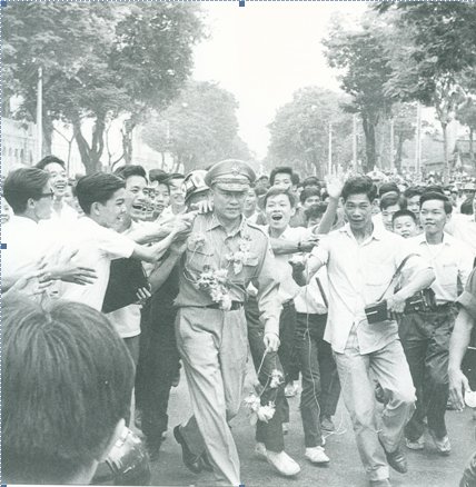 Vòng hoa chiến thắng trên cổ anh hùng Trần Văn Đôn