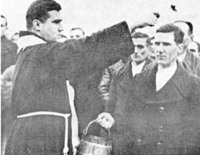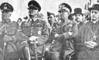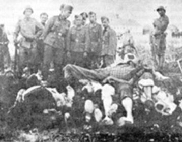 - Trang 21: Hình Tổng Giám Mục Stepinac, đại diện của Tòa Thánh bên cạnh Quân Đội của chế độ Ustashe, đứng đầu hội đồng giám mục Croatian và Ủy Ban thi hành chính sách cưỡng bức cải đạo (Stepinac was not only the Head of the Council of Croatian Bishops and of the Committee which carried out a policy of forcible conversions, he was none other than the Supreme Military Apostolic Vicar of the Ustashe Army) - Trang 23: Ngày 28 tháng 4, 1941, Stepinac ban lệnh cho giới linh mục Croatian ủng hộ quốc gia mới Ustashe, và cảm tạ thiên chúa toàn năng vì đã thiết lập được chế độ độc tài Ustashe (On April 28, 1941, Stepinac issued a Pastoral Letter ordering the Croatian clergy support the new Ustashe State, and thanks to the Almighty for the establishment of the Ustashe dictatorship) - Trang 26: Hình Tổng Giám Mục Stepinac chụp chung với Tướng Roata, chỉ huy lực lượng phát-xít chiếm đóng Nam Tư, Tướng Slavko Kvaternik, Chỉ Huy quân đội Ustashe, và vị Tổng Chỉ Huy lực lượng Đức chiếm đóng Nam Tư (From right to left: Archbishop Stepinac; General Roata, Commander of the Fascist forces of occupation in Yugoslavia; Field Marshal Slavko Kvaternik; and the Commander of the German forces of occupation in Croatia) - Trang 27: Hình Ante Pavelic, người lập lên quốc gia Công giáo Croat và thi hành chính sách khủng bố, chính trị cực đoan, và cuồng tín tôn giáo. Được sự bao che của Giáo Hoàng Pius XII, người đã giúp hắn ta tài chánh qua đường lối ngoại giao để hắn thực hiện mục tiêu. Khi chế độ Ustashe sụp đổ, Pavelic trốn trong Vatican rồi giả dạng làm một linh mục, chuồn sang Á Căn Đình (Ante Pavelic, the creator and leader of the independent Catholic State of Croatia. He employed terrorism, political extremism and religious fanaticism.. He enjoyed the protection of Pope Pius XII, who helped him via diplomatic and monetary to achieve his ultimate objective. When Ustashe Croatia collapsed, Pavelic hid at the Vatican, then, disguised as a priest, fled to the Argentine) - Trang 34: Hình bản sao tài liệu gốc về luật của Bộ Tư Pháp và Tôn Giáo Croat, bắt buộc mọi viên chức chính phủ theo Chính Thống phải cải đạo sang Công Giáo. Từ chối sẽ bị cất chức ngay, tài sản bị tịch thu, hoặc bị bắt giữ. Thường là bị cả ba. (A copy of the original document dealing with the conversion to the Catholic Church of all Orthodox persons employed by the Government, issued in Zagreb by the Ministry of Justice and Religion. Everyone had to be or to become a Catholic. Refusal meant instant dismissal, loss of property, or arrest. And, very often, all three.) - Trang 35: Hình một cuộc hành quyết tập thể ở Brode bởi Ustashe, đầu năm 1941, dưới sự chứng kiến của binh sĩ Nazi (A mass execution carried out by the Ustashe at Brode, early in 1941. Nazi troops looking at the victims) - Trang 38: Hình một người Serb bị ném sống xuống hố chôn tập thể ở tại tập trung Jasenovac. Trong thời dưới quyền của một linh mục dòng Franciscan, Linh mục Filipovic, những sự khủng khiếp trong trại này thì tương đương với trại tập trung Dachau (của Nazi). (An Orthodox Serb being thrown alive into a mass grave in the notorious concentration camp of Jasenovac, in 1942. The camp, when run by the Franciscan Monk, Father Filipovic, equalled in horrors Dachau Concentration Camp) - Trang 39: Hình thây những đứa trẻ chết đói trong trại Jasenovac dưới quyền của linh mục Filipovic. Theo sự cố vấn của Linh mục D. Juric, Linh mục Filipovic đã để cho trên 2000 (2 ngàn) trẻ em Chính Thống chết đói dưới sự cai quản của ông ta (Corpses of children starved to death in the notorious concentration camp of Jasenovac, whose Commandant was a Franciscan monk, Father Filipovic. Father Filipovic, following the advice of Father D. Juric, let more than 2000 other Orthodox children die while the camp was still under his rule) - Trang 46: Hình Ustashe cắt cổ một trong số nạn nhân Serb theo Chính Thống. Hãy để ý có một Ustashi khác cầm cái bát hứng máu để cho máu khỏi bắn ra làm nhơ quân phục. Tội ác tàn bạo này – một trong nhiều tội ác khác – xảy ra gần Cajnice, năm 1943 (Ustashi cutting the throat of one of their Serbisn Orthodox victims. Notice a Ustashi is holding a vessel to collect the first spurt of blood and thus prevent their uniform from being blood stained. The brutal crime – one of many – took place near Cajnice in 1943.) - Trang 50, 51, và 53: Hình những người Serbs bị Ustashi treo cổ tập thể. - Trang 67, 68, và 69: Hình các linh mục làm lễ cải đạo đám đông dân Serbs. Avro Manhattan viết: Các linh mục Công Giáo không ngần ngại thủ tiêu những người chống lại lệnh cải đạo. Linh mục Dragutin Kamber, một linh mục dòng Tên, ralệnh giết 300 người Serbs Orthodox ở Doboj. Linh mục Branimir Zupanic, ra lệnh giết hơn 400 người trong một làng: Ragolje. Linh mục Srecko Peric, hô hào giết người tập thể như sau: ‘Hãy giết hết dân Serbs. Và khi giết xong hãy tới đây, vào nhà thờ, Ta sẽ nghe lời xưng tội và tha tội cho cho các con” Vì những lời này mà trên 5600 dân Serbs Orthodox bị giết ở quận Livno. (Father Dragutin Kamber, a Jesuit priest, ordered the killing of 300 Orthodox Serbs in Doboj. Father Branimir Zupanic, had more than 400 people killed in one village alone: Ragolje. Father Srecko Peric advocated mass murder with the following words: “Kill all Serbs. And when you f
