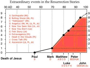 Các niên đại trên được hầu hết các học giả nghiên cứu Tân Ước đồng thuận, và đây là những tài liệu rất quan trọng khi chúng ta muốn nghiên cứu về chuyện xác chết sống lại và bay lên trời của Giê-su. Thánh Phao Lồ (Paul) viết về sự sống lại của Giê-su trong I Corinthians 15: 3-8, nhưng trước hết chúng ta hãy đọc I Corinthians 1 : 17-25 để thấy ông ta quan niệm về Gót (God) của Do Thái như thế nào, với vài lời bình của tôi để trong dấu ngoặc: (17) Vì Ðức Kitô đã chẳng sai tôi đi làm phép rửa, [Đức Ki-tô đã chết 20-25 năm trước rồi] nhưng sai tôi đi rao giảng Tin Mừng [Trong Tân Ước không có Tin Mừng mà chỉ toàn là Hung Tin: Xin đọc “The Bad News Bible: The New Testament” của Giáo sư David Voas] và rao giảng không phải bằng lời lẽ khôn khéo, để thập giá Ðức Kitô khỏi trở nên vô hiệu. (18) Thật thế, lời rao giảng về thập giá là một sự điên rồ đối với những kẻ đang trên đà hư mất [nghĩa là những kẻ không tin vào những điều hoang đường], nhưng đối với chúng ta là những người được cứu độ, thì đó lại là quyền năng của Thiên Chúa. (19) Vì có lời chép rằng: Ta sẽ hủy diệt trí tuệ của người thông thái, và làm cho sự hiểu biết của kẻ khôn ngoan chẳng là gì. (20) [Trái đất phẳng và có 4 góc, đó là trí tuệ của Gót. Trái đất quay chung quanh mặt trời, đó là sự hiểu biết chẳng ra gì! Và Giáo hội Ca-tô cũng đã dùng trí tuệ của Gót để đốt sách vở của những nhà thông thái, bạo hành các khoa học gia, sử dụng đức tin mù quáng thay cho lý trí v..v… Ô hô! Ai tai!] Người khôn ngoan đâu? Người học thức đâu? Người lý sự của thời này đâu? Chẳng phải là Gót đã làm cho sự khôn ngoan của thế gian là điên rồ hay sao? (21) Vì, trong sự khôn ngoan của Gót, thế gian, qua sự khôn ngoan, đã không nhận biết Gót. [Như vậy, chỉ có những kẻ điên rồ, ngu ngơ, mới nhận biết Gót] Cho nên Gót đã hoan hỉ, qua sự điên rồ của sự rao giảng thông điệp để cứu những người tin. (22) [Đúng là những rao giảng thông điệp của Gót là những lời điên rồ. Sách Khải Huyền đã được Tổng Thống Hoa Kỳ Thomas Jefferson “khen tặng” một cách rất chính xác như sau: “Sách Khải Huyền là những lời nói dốt nát của một kẻ điên khùng” [President Thomas Jefferson referred to the Book of Revelation as “the ravings of a maniac”, West County Times, California, USA, Editor Steven Morris, 14 August, 1995].] Trong khi người Do thái đòi hỏi một dấu lạ, còn người Hy lạp tìm kiếm trí tuệ, (23) thì chúng tôi lại rao giảng một Ðấng Kitô bị đóng đinh trên thập giá, điều mà người Do thái coi là khó tin không thể chấp nhận, và người Hy Lạp cho là điên rồ. (24) [Người Do Thái quả là thông thái, và người Hy Lạp quả là có trí tuệ] Nhưng đối với những ai được Gót kêu gọi, dù là Do thái hay Hy lạp, Ðấng Kitô là quyền năng và sự khôn ngoan của Gót. (25) Vì cái điên rồ của Gót còn thông thái hơn cái khôn ngoan của loài người, và cái yếu đuối của Gót còn hơn cái mạnh mẽ của loài người. [Chẳng trách Phao Lồ nói như kẻ điên để ca tụng cái điên rồ của Gót]. Sau đây là một điều rất mực khôn ngoan của Gót, đố ai có thể nghi ngờ sự thông thái và trí tuệ của Gót. Nguồn: https://www.freethoughtpedia.com/wiki/Theological_Criticisms Sau đây là lời Thánh Paul viết về sự sống lại của Giê-su trong 1 Corinthians 15: 3-8: Trước hết, tôi đã truyền lại cho anh em những sự kiện mà chính tôi đã lãnh nhận, đó là: Ðức Kitô đã chết cho tội lỗi chúng ta, theo Kinh Thánh, rằng Người đã được táng xác, và ngày thứ ba đã sống lại, theo Kinh Thánh, và rằng Người đã hiện ra trước Cephas (Peter), rồi trước Muời Hai Tông Đồ. Sau đó, Người đã hiện ra trước hơn năm trăm anh em chúng ta một lượt, phần đông hiện nay còn sống, nhưng một số đã chết. Tiếp đến, Người hiện ra trước James, rồi trước tất cả các Tông Ðồ. Sau hết, Người cũng đã hiện ra với tôi… Chúng ta biết rằng Paul viết đoạn trên trong khoảng từ 20 đến 25 năm sau khi Giê-su bị đóng đinh và táng xác. Đọc đoạn trên chúng ta thấy rằng Paul chỉ thuật lại những gì ông ta nghe người ta nói về Giê-su và suy diễn từ Cựu Ước chứ ông ta không phải là nhân chứng trong các vụ hiện ra, nếu có, của Giê-su. Paul không phải là một tông đồ của Giê-su, chưa từng gặp Giê-su, và trên đường đi đến Damascus, trong một ảo tưởng, cho rằng mình đã nghe tiếng của Giê-su từ trên trời vọng xuống. Do đó, trong thư viết cho người Cổ Linh, Paul không viết gì về chuyện Giê-su sinh ra từ một trinh nữ do một cái hồn ma (ghost) làm cho mang thai. Paul cũng không biết gì về chuyện xác chết của Giê-su sống lại trong 4 Phúc Âm của Mark, Matthew, Luke và John. Paul cũng không viết gì về ngôi mộ trống mà những người Ki-tô Giáo cho rằng đó là bằng chứng Giê-su đã sống lại. Cũng vì vậy mà Paul viết là “Giê-su đã hiện ra trước 12 Tông Đồ”, trong khi Judas, kẻ phản Chúa, đã chết, 