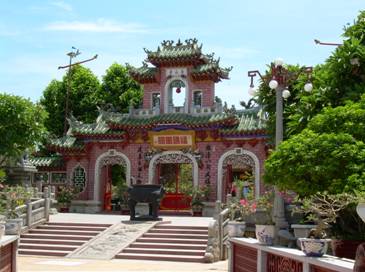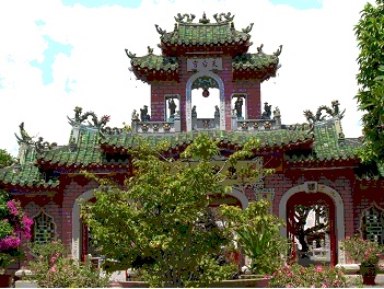 Chùa Phước Kiến, Hội An             Từ Hội An chúng tôi đi tham quan Ngũ Hành Sơn, leo hơn trăm bậc lên Chùa.  Cảnh trí thật hùng vĩ.  Chùa rất đẹp, nghe nói khi xưa dưới thời Diệm, “người ta” đã cắm cây thập giá trên đó.  Cây thập giá tượng trưng cho một hình phạt dã man nhất của lịch sử nhân loại, dùng để đóng đinh những tội phạm như trộm cắp, giết người v..v.. của  người La Mã, mà chúng ta thường thấy mấy ông giáo sĩ đủ cấp bậc và các nữ tu đeo lủng lẳng trên ngực. Mỗi khi nhìn thấy cây thập giá tôi lại rùng mình khi nghĩ tới hình phạt khủng khiếp này của thời bán khai. Những cảnh đẹp trên đất nước, trong nhiều Chùa không thể nào tả bằng lời.  Vài hình ảnh chụp qua máy ảnh cũng chỉ nói lên một phần rất nhỏ của cảnh thật.