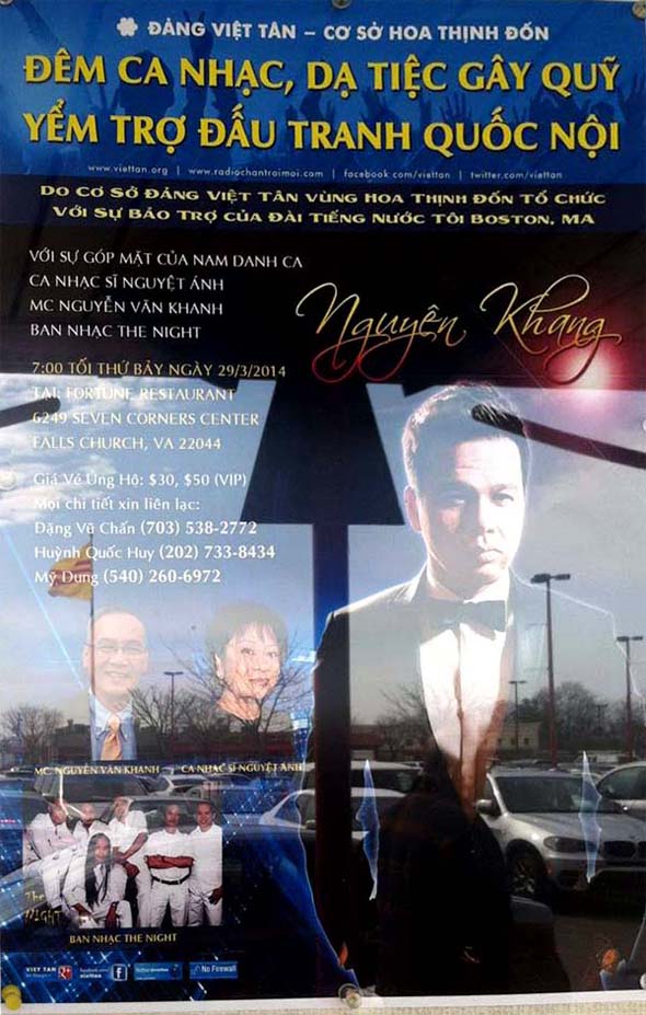 https://www.nguoi-viet.com/absolutenm2/templates/viewarticlesNVO.aspx?articleid=219302&zoneid=433 https://www.nguoi-viet.com/absolutenm2/templates/viewarticlesNVO.aspx?articleid=216625&zoneid=467 Có lẽ Bà đã nhận ra, các nhân viên RFA kể trên cùng quanh quẩn làm việc cho một số cơ sở truyền thông như SBTN, SBTN-DC và Người Việt. Có vẻ họ cấu thành một nhóm quyền lợi lẩn bên trong Chương Trình Việt Ngữ của RFA. Một cuộc điều tra thấu đáo hơn từ văn phòng của Bà có lẽ sẽ truy ra được tầm mức của sự cấu kết này. Dưới đây là một số thông tin có thể giúp ích cho Bà. Tấm hình dưới đây cho thấy Ông Nguyễn Văn Khanh tại buổi tiệc gây quỹ cho Việt Tân, tổ chức tại Falls Church, Virginia ngày 30 tháng 3 năm 2014. Tấm hình kế tiếp cho thấy Bà Thanh Trúc và chồng của Bà ấy cũng có mặt tại buổi tiệc này. Rõ ràng là Ông Khanh và Bà Thanh Trúc biết về sự vi phạm của nhau đối với điều lệ của RFA và đã cấu kết trong những sự vi phạm này.