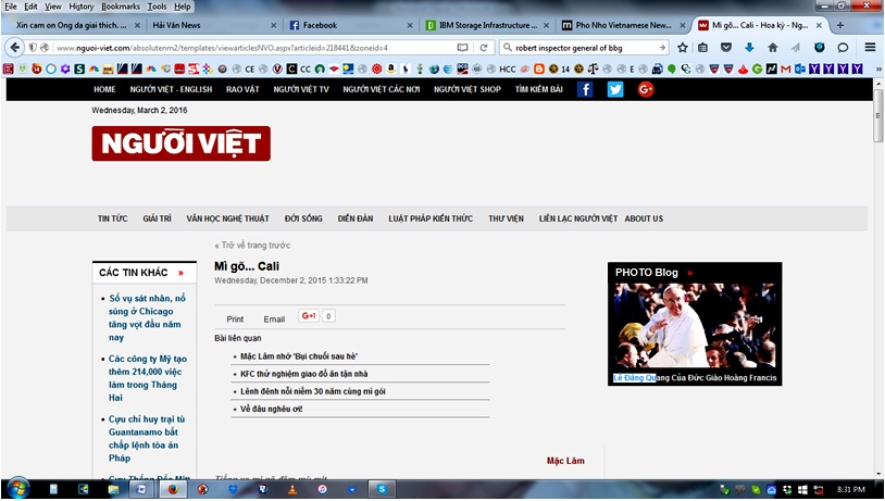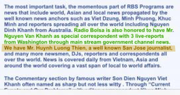 Ngày 3-3-2016 Thưa Bà Burns, Gần đây, tôi đã phổ biến một thông báo với công chúng để kêu gọi mọi người cung cấp thông tin về các nhân viên và phóng viên RFA như sau: Ông Nguyễn Văn Khanh, Bà Thanh Trúc (Gwen Ha), Ông Mặc Lâm (Phạm Thân) và Ông Lê Khiêm. Kết quả là tôi đã nhận được những thông tin có giá trị và nhiều lời mách bảo, mà tôi sắp sửa chia sẻ với Bà như là những chứng cớ cung cấp thêm cho cuộc điều tra mà Bà đang thực hiện. Tôi tin rằng, đây là những chứng cớ trực tiếp và có thể kiểm chứng. Chắc bà cũng biết rằng, điều quan trọng là ngăn chặn những người kể trên để họ không phi tang chứng cớ có thể kết tội như email, hoặc giấu giếm hoặc có âm mưu giấu giếm chứng cớ. Làm như thế là cản trở công lý, là phạm tội hình sự, nếu như cuộc điều tra của Bà đòi hỏi tiếp theo phải có cuộc điều tra hình sự của chính quyền liên bang. Thật không thể hình dung được rằng tất cả những điều nói trên đã xảy ra mà Bà Libby Liu không hề hay biết, trừ khi Bà Liu bất lực hay đồng loã. Làm thế nào để xảy ra chuyện nhiều nhân viên RFA, đặc biệt là vị Giám đốc Chương trình Việt ngữ, có hợp đồng làm việc bên ngoài, xuất hiện trước công chúng để ủng hộ một đảng chính trị, hoặc vi phạm điều lệ đạo đức của chính RFA một cách hoàn toàn vô tội vạ trong thời gian dài như vậy? Làm thế nào để xảy ra chuyện RFA hợp tác với Việt Tân, một đảng chính trị ngoại quốc, trong một số dự án bề nổi, trong khi chính sách của RFA khẳng định rõ ràng rằng “các nhà báo của RFA phải giữ sự độc lập đối với mọi đảng chính trị, các nhóm đối lập, tổ chức lưu vong, hoặc tôn giáo, ở những quốc gia mà tin tức và thông tin của RFA được phổ biến, và không được cổ suý cho bất kỳ quan điểm chính trị nào có thể hoặc bị xem là ảnh hưởng đến tính khách quan và vô tư của RFA”? Làm thế nào để xảy ra tình trạng các bản tố cáo của nhân viên RFA đã bị bỏ qua một cách có hệ thống, không hề bị điều tra, trong khi người tố giác thì bị bịt miệng bằng khoản trợ cấp thôi việc? Xét về tầm vóc, mức độ trầm trọng và mức độ thường xuyên của những vi phạm, thật đáng ngạc nhiên vì mức độ của sự điều hành sai trái, và không thể loại trừ có sự thông đồng giữa Bà Libby Liu và Ông Nguyễn Văn Khanh. Các công việc bên ngoài của Ông Nguyễn Văn Khanh Trong những lần liên lạc trước đây, tôi kêu gọi sự quan tâm của Bà đối với sự việc là Ông Nguyễn Văn Khanh, ngoài RFA ra, còn làm việc hợp đồng có thù lao như là thông tín viên/bình luận viên/biên tập viên cho 5 tổ chức truyền thông Việt ngữ. Những mách bảo mà tôi mới nhận được trong mấy ngày qua tiết lộ rằng Ông ta còn làm hợp đồng với thêm 2 cơ quan truyền thông nữa, nâng con số tổng cộng lên thành 7 cơ quan truyền thông. Đó là: 1. SBTN: Ông Khanh đã được tuyển dụng như một người huấn luyện, quảng cáo và làm MC cho SBTN. Tháng 6 năm 2013 Ông ta được SBTN cử đi Úc để thiết lập đài SBTN – Úc Châu. Ông ta đi với Bà Minh Thuý, là nhân viên của SBTN-DC và cũng là đảng viên Việt Tân và là bạn gái của Ông ta. 2. SBTN-DC: Ông Khanh làm việc như là một phóng viên cho đài SBTN-DC trong chương trình “Bản Tin Hoa Thịnh Đốn.” Nhiều khi Ông ta xuất hiện trong chương trình này vào giờ giấc mà lẽ ra ông ta phải làm việc cho RFA. 3. VATV: Ông ta đã tham gia các buổi huấn luyện do VATV tổ chức tại nhiều thành phố khác nhau ở Hoa Kỳ và ở các quốc gia khác để huấn luyện cho những ai muốn làm phóng viên cho SBTN. 4. Radio Bolsa: Ông ta là thông tín viên đặc biệt của đài phát thanh đặt tại quận Cam, California. Ông ta có ít nhất 3 chương trình mỗi tuần vào lúc 10 giờ sáng, lại cũng là giờ lẽ ra Ông ta phải làm việc cho RFA. 5. Việt Nam Hải Ngoại Radio: Cho tới gần đây Ông ta chuyên trách một chương trình phát thanh hàng tuần với giá biểu là $100 mỗi lần và với điều kiện là tuần nào ông ta vắng mặt thì vẫn phải được trả thù lao. 6. Báo Người Việt: Ông ta là người hợp tác thường xuyên với tờ nhật báo này ở quận Cam, California. 7. Báo Phố Nhỏ: Với những bút hiệu khác nhau, Ông Khanh quán xuyến toàn bộ trang nhất của tờ báo phát hành hai tuần một lần này và nhận thù lao $2.500 mỗi tháng. Các bút hiệu Ông ta dùng gồm có: Nguyễn Đức Tuấn Anh (tên của người con trai duy nhất), Lê Thắng Độ, Vũ Quang Lâm, Trương Khả Trân, Nguyễn Long Quân... Ông Khanh quán xuyến toàn bộ trang nhất của tờ báo phát hành hai tuần một lần này và nhận thù lao $2.500 mỗi tháng. Ảnh do tác giả cung cấp Theo ước tính của tôi, Ông ta có thu nhập khoảng $80,000 - 100,000 mỗi năm từ những công việc ngoài RFA kể trên, và danh sách các tổ chức truyền thông hợp đồng với ông ta có thể không ngưng ở con số 7 nói trên. Với 7 công việc ngoài RFA, trong đó có những công việc đòi hỏi nhiều thời gian và/hoặc phải phục v