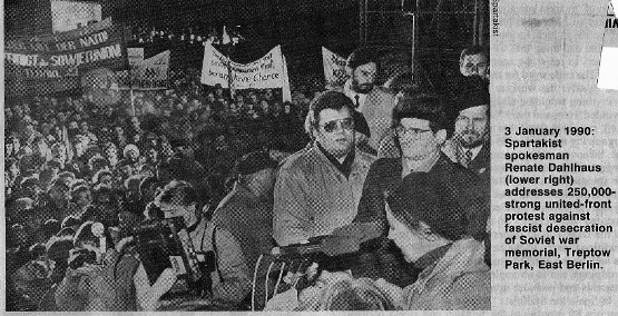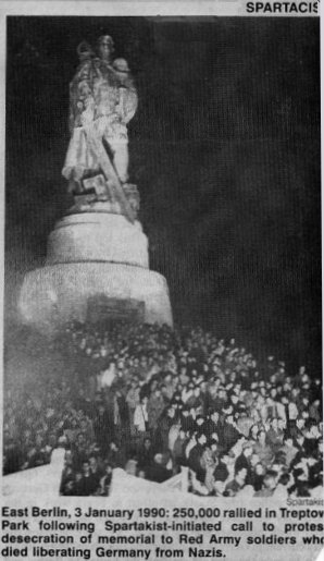 Xem ra, những mâu thuẫn, những rắc rối không chỉ ở những kế sách. Ngày 3 tháng Giêng 1990, trong biến cố Treptow, 250,000 người xuống đường tại công viên cùng tên, phản đối sự đòi triệt hủy tượng đài kỷ niệm binh sĩ Hồng quân có công giải phóng Đức…mà lực lượng Ái quốc thượng đẳng chủng tộc Nazi xướng xuất, đòi dẹp tượng đài. Những người phản đối tập họp lớn lao, lại là bởi sự xướng xuất của nhóm Grupen, tổ chức chính trị mang khuynh hướng Trotsky-Liebknech-Luxemburg, nhóm chính trị Đức SpAD (Spartakist-Arbeiterpartei-Deutschland) trong nhóm TLD (Trotzkistische Liga Deustchland) mà thành cơn bão chính trị thế giới. Cuối tháng Hai, Gorbachev loan báo Liên bang Nga đã chấp thuận sự giải thể đảng DDR, và sáp nhập đảng này - Dân chủ Cộng hòa Đức (German Democratic Republic – DDR) vào chính đảng bên Tư bản. Sự loan báo này chấn động như bom nổ trong giới công nhân lẫn trí thức – những người vẫn ước ao sự tồn tại của tinh thần xã hội chủ nghĩa. Sau khi hợp nhất hai miền, giới Buốc-gioa Đức tìm cách giải thể các hãng xưởng sản xuất Đông Đức mà trước đó đã từng được xếp hàng mười về hiệu năng sản xuất trên thế giới. Sản xuất kỹ nghệ tụt giảm mất 75% từ 1989 trở đi. 5 triệu công nhân mất việc trên tổng số 9.5 triệu. Các nạn nhân đầu tiên của sự thất nghiệp là phụ nữ. Sự đóng cửa các xưởng kỹ nghệ không vì sự tính toán lợi nhuận lời lỗ của tư bản. Đó là sự cố tình làm phân vụn, làm hủy tinh thần truyền thống của vô sản trong xã hội tại Đông Đức. Đó là sự trả thù của tư bản Đức đã thua trận trước Hồng quân trong Đệ
