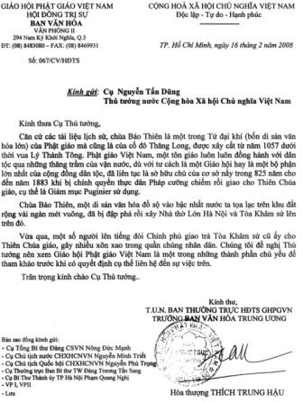 Đồng Kính Gửi Thủ Tướng NGUYỄN TẤN DŨNG