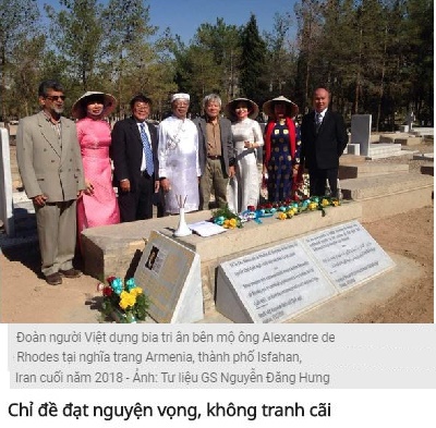 P/S. Được biết trong năm GS.TSKH Nguyễn Đăng Hưng đã dẫn đầu một số người Việt sang tận Iran để đặt bia tưởng niệm, làm lễ tri ân A.D.Rhodes, theo tôi nghĩ đây không phải là lần cuối cùng của ông sang đó, nhất định ông và nhiều người khác nữa sẽ tái lai cho trọn tình trọn nghĩa. Trong trường hợp ông đi, tôi xin đề nghị tài trợ cho đoàn của ông, nhất là nếu mời thêm được những người đang đề nghị vinh danh A.D.Rhodes cùng đi càng tốt.