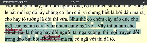(trích bản Phép Giảng Tám Ngày dịch ra chữ quốc ngữ ngày nay, và minh họa) Tất nhiên tôi không tài trợ vô tư đâu, mà có điều kiện, nhưng điều kiện của tôi hết sức đơn giản, đó là ông hãy đem theo cuốn Phép Giảng Tám Ngày trong đó xin vui lòng sửa hai chữ Thích Ca (20 chỗ) thành Mohamed, như thế cho Cha trọn lời thề, rồi đặt lên mộ với trang sách này đang mở để tưởng niệm thế thôi. Lưu ý là vui lòng quay phim, chụp ảnh rõ ràng như ông đã làm lần trước để tôi có cơ sở thanh toán, được như thế tôi vô cùng cám ơn ông.