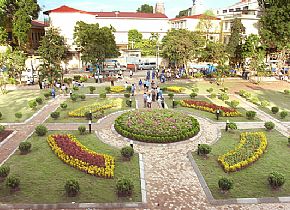 trung tâm, trồng cây xanh, trải thảm cỏ và lát gạch các đường đi dạo quanh công