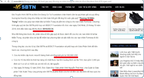 Theo thông tin công khai từ đài “chống cộng cuồng si” SBTN và “Việt Tân” thì đây chính là số tiền mà đài truyền hình SBTN ở hải ngoại quyên góp do Việt Tân phát động trong thời gian qua dưới vỏ bọc nhằm cứu giúp nạn nhân bão lụt Miền Trung và yểm trợ công lý cho nạn nhân Formosa. Số tiền công khai mà tổ chức này bơm cho Thục thực hiện âm mưu bảo loạn là 619,632.34 nghìn USD. Tất nhiên, đó chỉ là phần nổi trong tảng băng chìm mà sự thực bao nhiêu thì chỉ có “cha” mới biết.