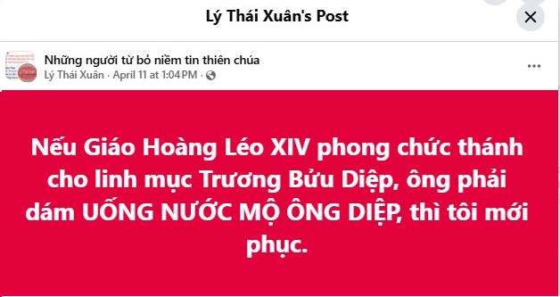 Giáo Hoàng Léo XIV có dám UỐNG NƯỚC MỘ ÔNG DIỆP, người mà ngài sắp phong thánh đấy.