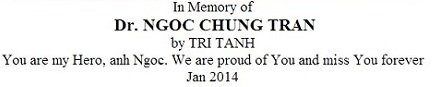 3- Honoree thì "In Memory of" "Dr. NGOC CHUNG TRAN"