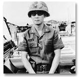Phó đề đốc Hoàng Cơ Minh với áo bà ba quấn khăn rằn