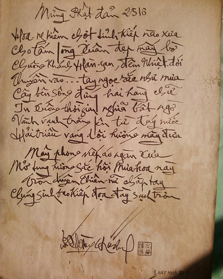 (2) Thủ bút bài thơ Mừng Phật Dản 2516. Bấm vào hình để phóng lớn hơn: