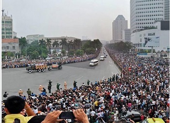 Biển người tràn ra hướng về nhà Tang Lễ để tiễn đưa lần cuối Đại Tướng Giáp. Ảnh https://www.thanhnien.com.vn/