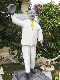 Tượng Ngô Đình Diệm sau vườn nhà ông "TS Hồng Lĩnh", một tàn dư Cần Lao ở Thụy Sĩ. Tượng này rất nổi tiếng trên các diễn đàn thư tín vì trông giống một hình nộm bị băng bột, cầm cái chảo và cây gậy để canh trộm .