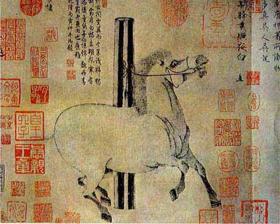 Tranh của Hàn Cán 韓幹 (khoảng 706 -780) đời Đường - bài thơ viết trong tranh là của vua Càn Long vào năm 1746 đời Thanh -