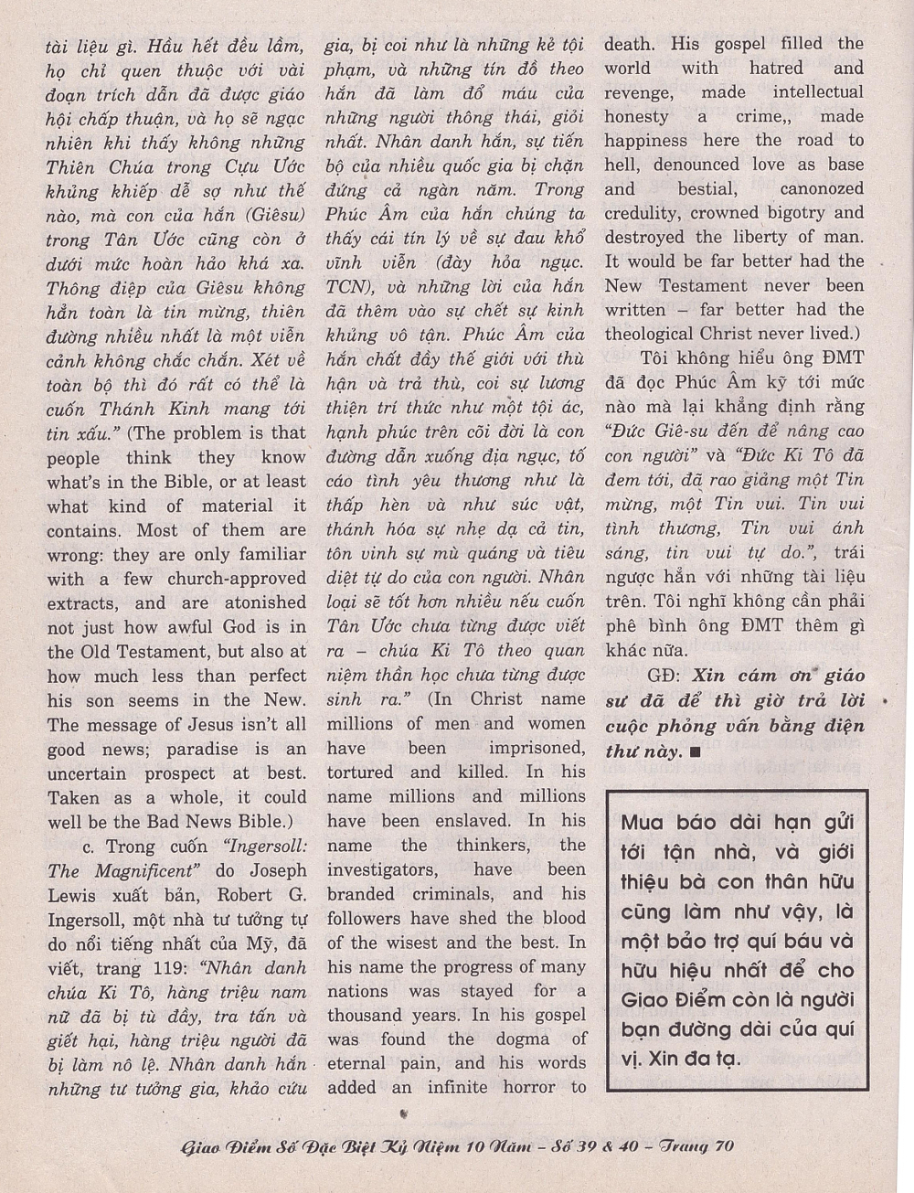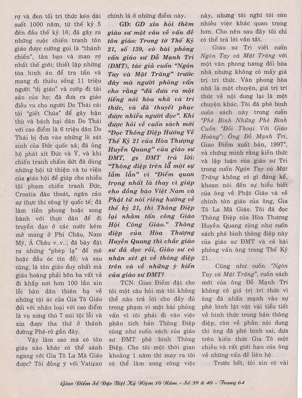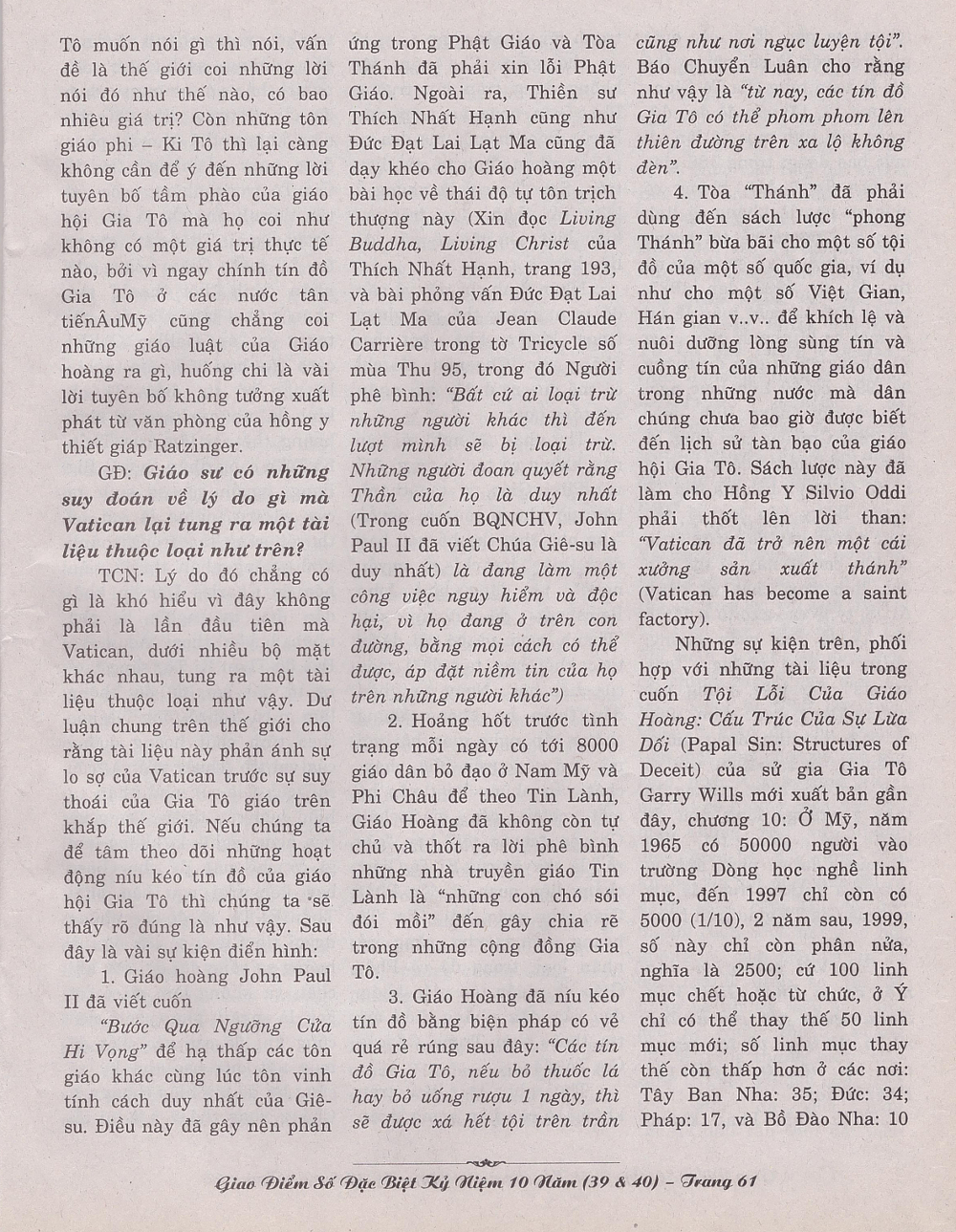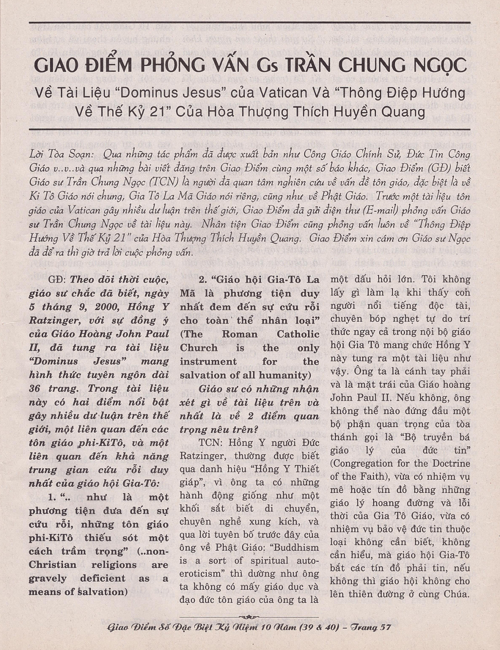 LTS: Đây là những ảnh chụp của vài trang báo giấy Giao Điểm cũ, phát hành mùa đông năm 2000. Trang mạng sachhiem.net đến hôm nay mới xin được vài bài để giữ làm tài liệu cho độc giả. Tin rằng bài vẫn còn mới đối với nhiều độc giả. Tất cả có 14 trang. Xin bấm vào mỗi hình bên trái sẽ mở trang lớn hơn ở bên phải để đọc.