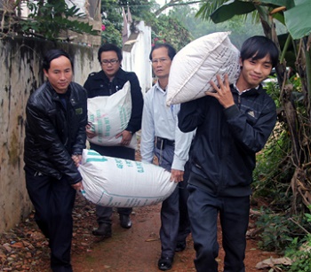 [SH - Một tạ gạo là bao nhiêu? Ảnh minh họa để thí dụ, trích từ bài "Quỹ Nhân ái hỗ trợ 1 tạ gạo và 5 triệu đồng đến cháu Trần Thị Tân" Bốn thanh niên lực lưỡng vác gạo như thế mấy lần mới đủ 1 tạ gạo: 4 bịch. Thử làm một con tính nhỏ.