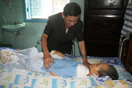 -- Anh hùng Mười Thương đang chăm sóc phu nhân bị bán thân bất toại.--
