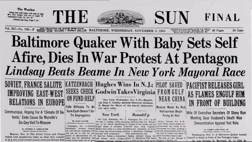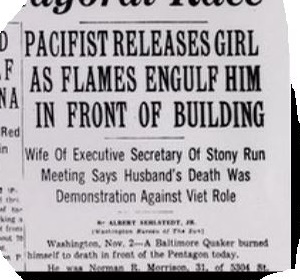 Động lực thứ hai là cuộc tự thiêu của Norman Morrison, người Mỹ đầu tiên hưởng ứng phong trào tự thiêu của Hòa Thượng Thích Quảng Đức. Norman Morrison đã leo lên bức tường bao quanh Nhà Năm Góc (02 Nov, 1965) để tự thiêu phản đối chiến tranh Việt Nam. Chỗ mà Bộ Trưởng Quốc Phòng Robert McNamara có thể nhìn thấy từ phòng làm việc của ông trong Lầu Năm Góc.