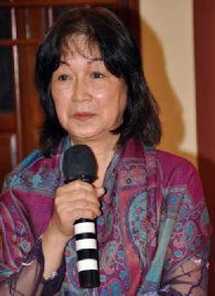 | Bà Bích Diễm - Ảnh: Thái Lộc | Trong vòng vây của cánh phóng viên - Ảnh: Thái Lộc |