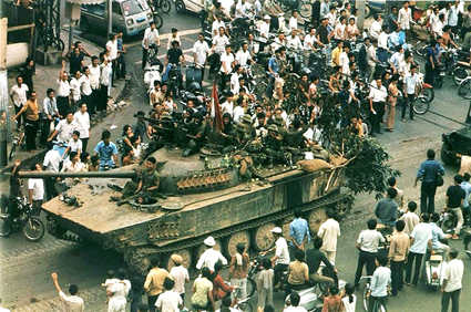 Ngày 21 tháng 4, TT Nguyễn Văn Thiệu tuyên bố từ chức. Ngày 28 tháng 4 Dương Văn Minh lên thay thế. Sáng ngày 30 tháng 4, chiếc xe tăng và bộ binh của quân đội VNDCCH tiến vào dinh Độc Lập. Cùng ngày, TT Dương Văn Minh tuyên bố đầu hàng, kết thúc cuộc chiến tranh giành độc lập kéo dài 30 năm, mở ra vận hội mới: đất nước được thống nhất và độc lập.