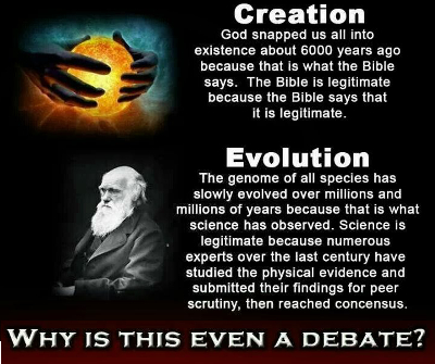 1. Thuyết Sáng Tạo: Thiên Chúa thộp chúng ta vào hiện hữu khoảng 6 ngàn năm trước bởi vì Kinh Thánh nói như vậy. Kinh Thánh là chính đáng bởi vì Kinh Thánh nói nó chính đáng.