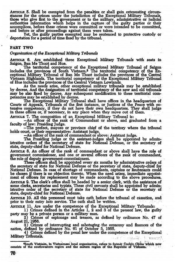 - Trang 308 – “Công báo ngày 22-5-1959: “…Các tòa án (Quân sự Đặc biệt) sẽ không chờ các tổ chức an ninh giải các tội phạm đến cho mình. Chính tòa án phải là tổ chức chỉ đạo việc truy lùng các thủ phạm và đồng bọn của chúng. Việc tiêu diệt chủ nghĩa khủng bố phải do chính bản thân các tòa án điều hành. Các tòa án không phải chỉ là những cơ quan xử án và thi hành pháp luật, mà trước tiên đó là những cơ quan có nhiệm vụ phải tiêu diệt nạn khủng bố”