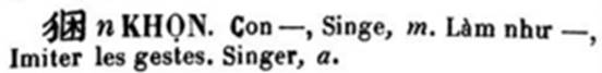 4) Tác giả Jean-François Génibrel ghi khọn là con khỉ trong cuốn "Dictionnaire annamite français" (deuxième édition, Imprimerie de la Mission à Tân Định 1898), chụp lại trang 366: