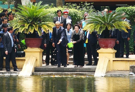 Về chuyện “cá chết miền Trung”, có lẽ Obama đã OK, number one với nội dung bản trả lời trên blog này (SH - Xin xem Phụ Trang ở dưới) nên đã lờ tịt các thỉnh cầu của đám “thỉnh nguyện thư cá thối” (?). Không hề thấy Obama nêu vấn đề này với chính phủ Việt Nam hay đả động đến chuyện đòi cho chuyên gia đến Vũng Áng để cung cấp đánh giá độc lập về tác động môi trường của nhà máy thép [Formosa]. Trớ trêu và thâm thúy hơn cả, việc duy nhất mà Obama làm trong chuyến thăm có “liên quan đến cá”, lại là sự kiện đến thăm và hào hứng cho cá ăn tại ao cá Bác Hồ trong Khu di tích Nhà sàn.